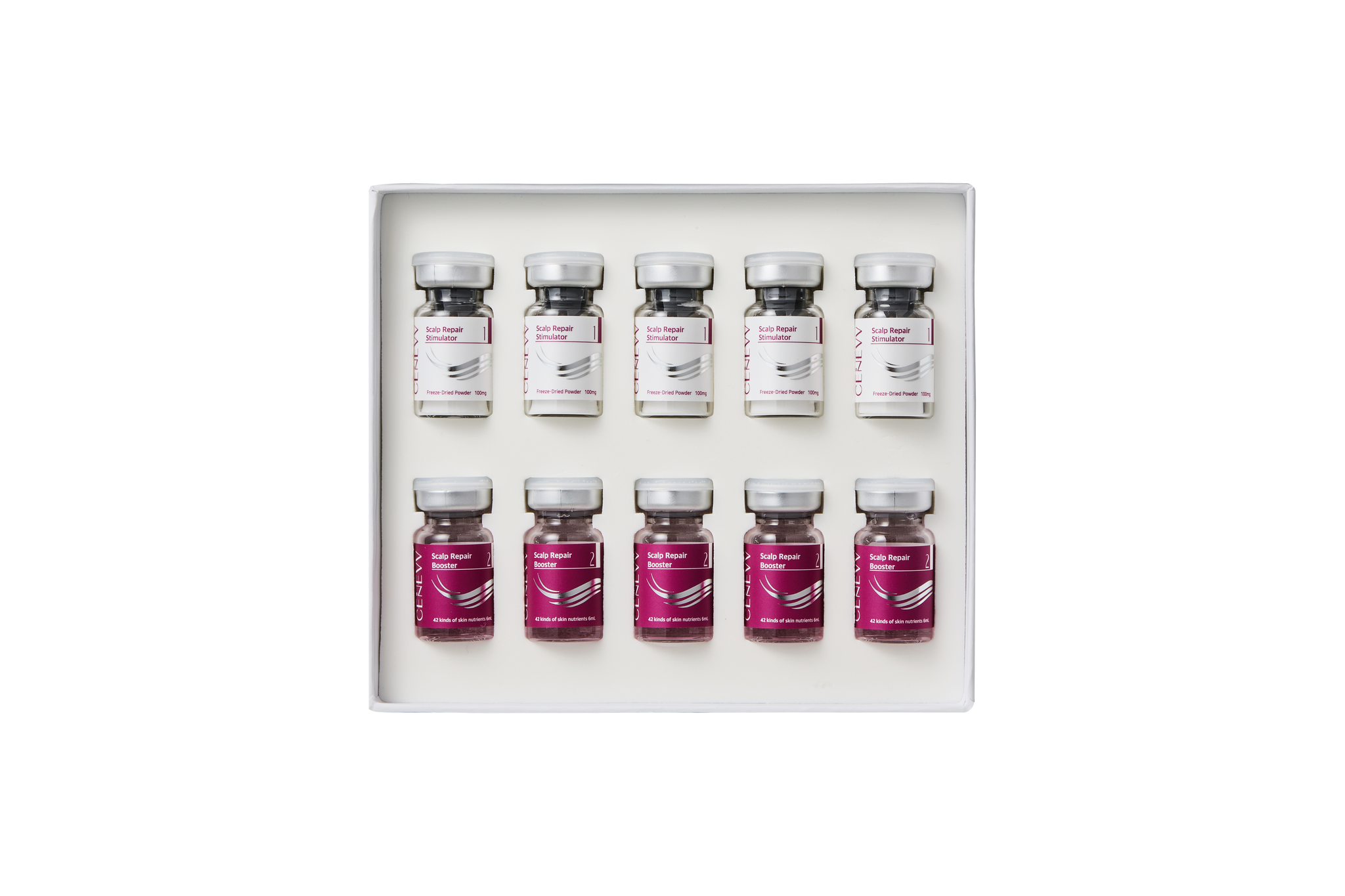 CENEVV Scalp revolution Repair - The new era of Scalp regeneration. This dual vial program revitalises your scalp from the inside out, awakening stronger, healthier hair growth.